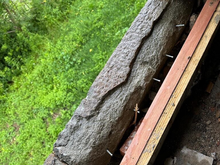 This being an old house, every window is a different size and shape. One of the first steps was to rebuild every window casing. Many had damaged stone sills, so the carpenter would create a temporary frame, pour concrete, and blend it into the existing stonework. He did a beautiful job, and it is often difficult to see where the original stonework ends and the new repairs begin.
